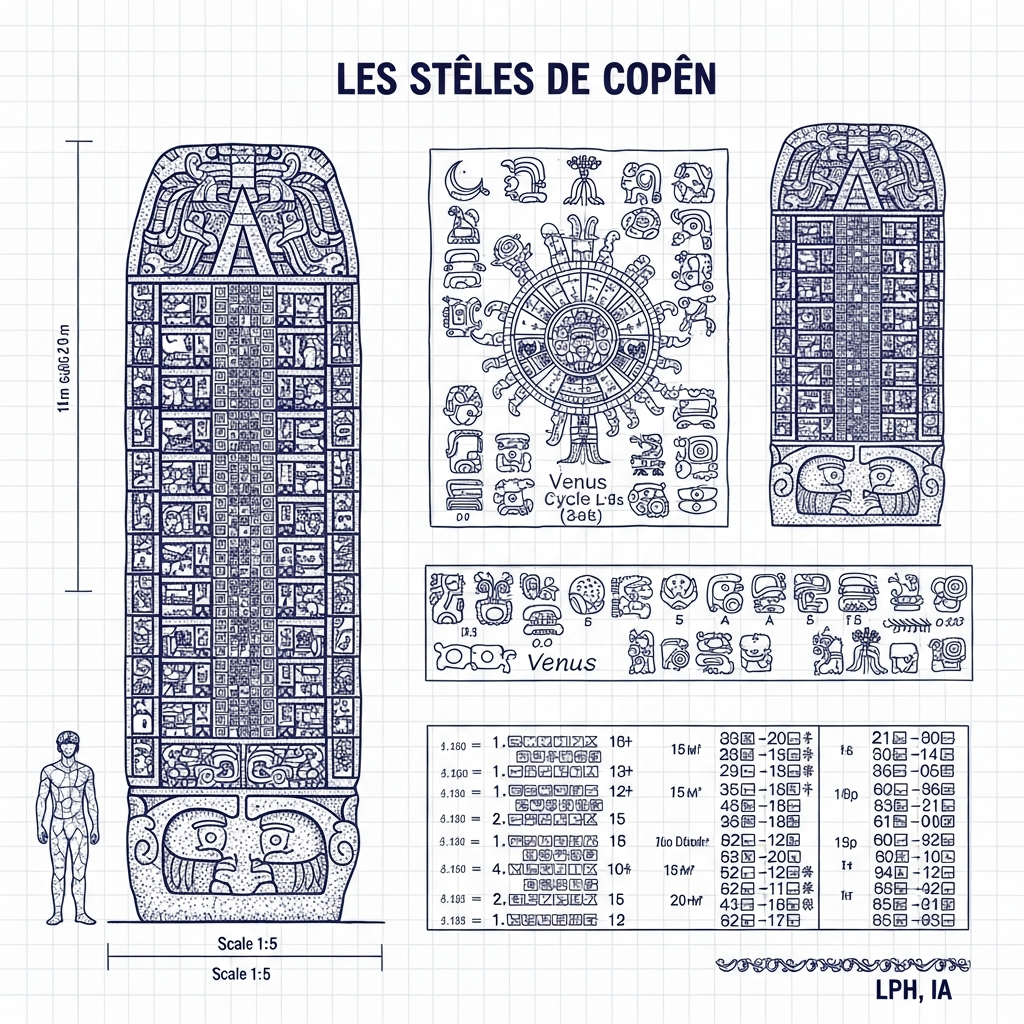 Les prêtres-astronomes mayas observaient le ciel depuis des observatoires comme celui de Uaxactún, où des temples alignés permettaient de marquer avec précision les équinoxes et les solstices. À Copán, des stèles enregistraient les cycles de la lune et des planètes avec une exactitude remarquable. Ces observations n'étaient pas de simples curiosités. Elles servaient à prédire les éclipses, à déterminer les dates propices aux semailles et aux récoltes, à rythmer la vie religieuse et politique des cités.
