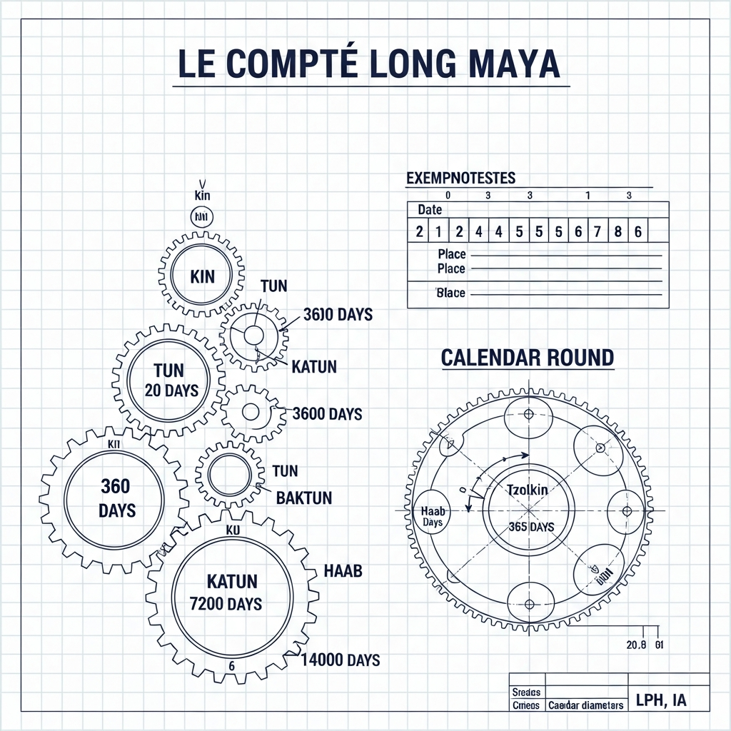 Mais le calendrier maya n'était pas qu'un outil de mesure. C'était un système d'intégration de multiples cycles temporels. Le Tzolk'in, calendrier sacré de 260 jours, s'entrelaçait avec le Haab', calendrier solaire de 365 jours, pour former le Calendrier Rond — un cycle de 52 ans au terme duquel les mêmes combinaisons de dates se répétaient. Cette superposition de cycles, cette capacité à penser le temps comme un entrelacement de rythmes différents, préfigure de façon saisissante les structures de données que nous utilisons aujourd'hui dans nos systèmes informatiques.