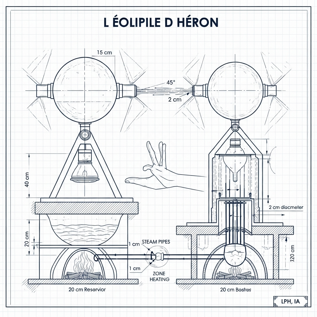 Héron d'Alexandrie, au premier siècle de notre ère, porta cet art à son apogée. Son éolipile, sphère creuse mise en rotation par des jets de vapeur, constitue le premier moteur thermique de l'histoire. Ses portes de temple, actionnées par la chaleur d'un feu d'autel, s'ouvraient et se refermaient sans intervention humaine. Son distributeur d'eau bénite, déclenché par l'insertion d'une pièce de monnaie, est la première machine automatique à transaction de l'humanité. Et son théâtre mécanique, spectacle de dix minutes entièrement programmé par un système de cordes, de nœuds et de cames, préfigure de façon stupéfiante les automates à cames du dix-huitième siècle européen.