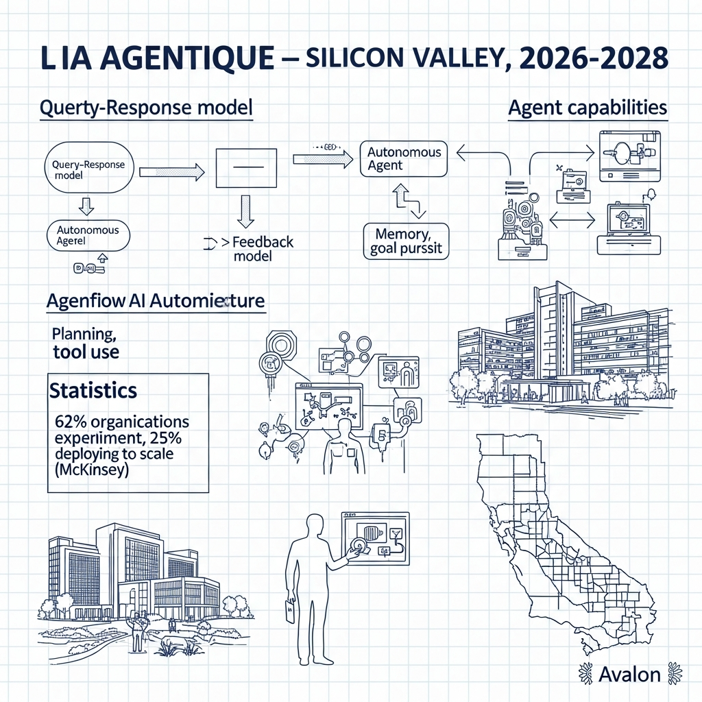 En 2024, l'IA générative répondait à des questions. En 2026, l'IA agentique exécute des tâches. Elle réserve des voyages, rédige des contrats, coordonne des équipes, gère des portefeuilles. Elle ne se contente plus de suggérer — elle décide et implémente.